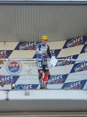 Todos los que estuvimos en Jérez podemos decir que fue una carrera de infarto en la que nuestro piloto catalán Russell Gómez no tubo rival que le hiciera sombra.